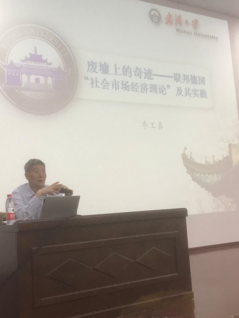 李工真教授在讲座中,聚焦战后联邦德国的重新崛起,着重阐明了联邦德国在“社会市场经济理论”的指引下,在战后的废墟中重建德国,并将德国引上了“和平工业化”的全新道路。通过对“社会市场经济理论”、德国福利制度、战后联邦德国发展的优势等问题的讲述与阐释,揭示了战后德国所创造的经济奇迹的深层原因。在这场长达三个小时讲座中,李工真教授以其精深的学术能力、精妙的语言及深入浅出的讲解,为yl23455永利官网的师生们带来了一场学术盛宴,让听众体味到了学术研究的真正价值与乐趣。