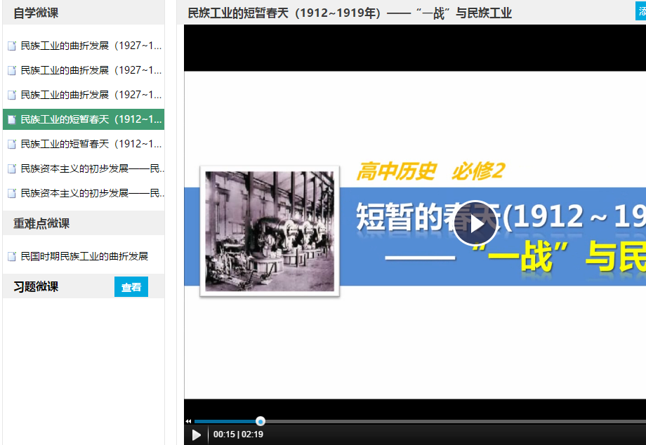 教学重点 | 民族工业的“短暂春天”。 内容典型说明了三座大山是阻碍近代工业发展的最根本因素,本知识点对学生知识与能力的培养、情感与价值观的引导有十分重要的作用。 | ||