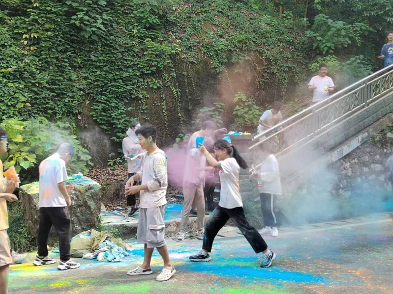 一切都准备就绪后,随着辅导员杨绍浩老师的一声”开始”,彩虹跑正式开始了!跟随着领跑员的脚步,伴随着五色彩虹粉,同学们先后经过教育大楼、学舍25栋、生科院以及青山湖,一路上你追我赶,酣畅淋漓,大家热情高涨!一路上留下了同学们的青春身影和欢声笑语!五颜六色的彩虹粉,书写多姿多彩的青春故事,如果说青春有颜色,五彩斑斓的奔跑才是热血青春的本色,众人身上皆点缀着不同的色彩,但脚步并未停歇,这将是同学们成长道路上的独特回忆。