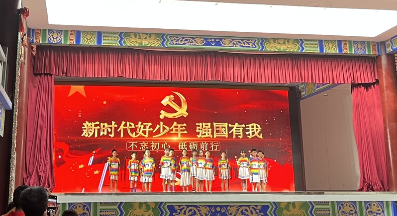 汇演在王曙小学三、四年级学生带来的舞蹈《最好的舞台》中拉开序幕。支教师生用舞蹈、歌曲演唱、诗词朗诵等节目形式表达了当代青少年“强国有我”的信念和对美好未来的向往。