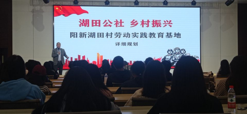 最后,全体老师和同学聚集矿博园报告厅,与黄石文景公司的团队成员进行了交流。文景公司负责人曹经理通过研学旅行规划案例的展示,向同学们分享了研学旅行行业发展现状及工作要求,饶总则对同学们进行了关于职业发展、个人学习的相关分享,表达了对同学们殷切期望。旅游系主任王军老师对本次活动进行了总结。