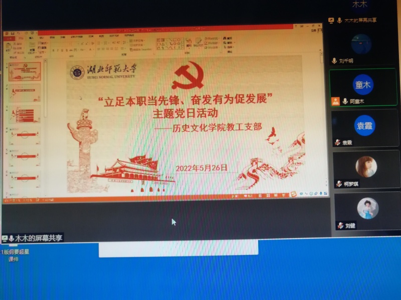 5月26日晚上,yl23455永利官网教工支部在腾讯会议上开展5月主题党日活动,活动由yl23455永利官网教工支部书记穆昭阳主持。