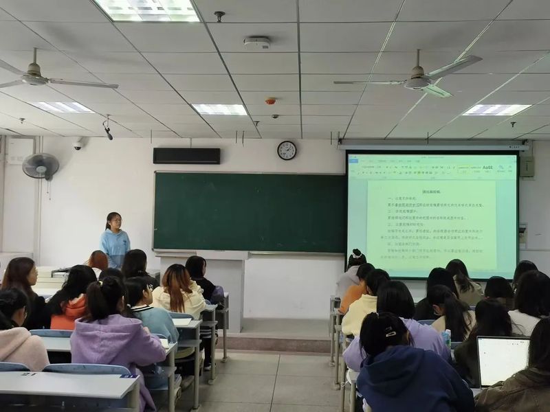 活动第一项,文学院新媒体各部门部长依次上台发言,就宣传工作的各方面进行了详细地交流与分享。他们指出:大家在文字方面可以多多学习人民日报,央视新闻等官方媒体,并做好出处标注;同时,大家也可以适当选用一些书籍诗词和名言警句进行分享,每次稿子至少准备一张及以上的配图。活动摄影方面,主要有黑板,观众,PPT和主将人四个要素,主讲人环节可以适当拍特写照片,提高摄影质量。