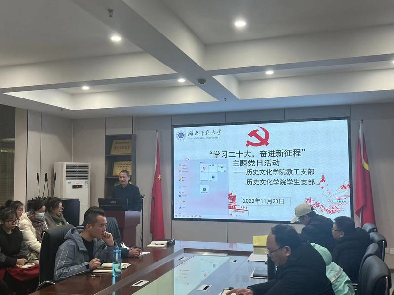 2022年11月30日下午,yl23455永利官网教工支部与学生支部联合举办“学习二十大,奋进新征程”主题党日活动,全体教工支部党员及31名学生预备党员参加活动。活动由支部书记穆昭阳同志主持。