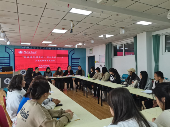 其次,学生党员白璇领学习近平总书记关于宗教工作的重要论述摘编。历史系主任周鑫随后就“相信老师”、“开放心态”、“广结好友”等几方面分享少数民族学生培养经验。在各班少数民族学生代表交流发言环节,在座学生积极分享了自己来校后在学习、生活等方面的所思所想,表示“在老师和同学们这样的爱护和关爱下我们凭什么不努力,我们要更加的努力,用所学的一技之长回报学校、回报社会。”
