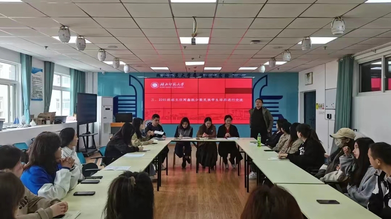 首先,辅导员王雅菲充分肯定了少数民族学生在校的优异表现,并对这样一群奔赴远乡的学生进行真切的问候。接着,学生党员白璇引领大家学习习近平总书记关于教育工作、民族工作重要论述摘编。随后,系主任周鑫就“相信老师”、“开放心态”、“广结好友”等几方面分享少数民族学生培养经验。    在之后的学生代表交流环节,同学们积极发言,讲述了自己在学校学习和生活等方面的感受,畅谈了在各方面取得的成绩和收获以及面临的困难和问题,对学校的改革发展提出了宝贵的意见和建议。表示“在老师和同学们这样的爱护和关爱下,我们要更加地努力,用所学的一技之长回报学校、回报社会。”