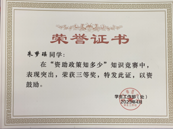 与此同时同学们踊跃参加“资助政策知多少”知识竞赛,其中柯蒙蒙、朱梦瑶在校级竞赛中脱颖而出,荣获二等奖、三等奖的好成绩。