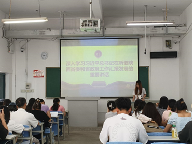 随后,由2001班党员代表崔杨荆枝负责讲解微党课,带领大家深入学习习近平总书记在听取陕西省委和省政府工作汇报发表的重要讲话,和在二十届中央政治局第四次、第五次集体学习时的讲话。习总书记强调要要贯彻新时代中国特色社会主义思想主题教育,提高政治站位,充分认识开展主题教育的重大政治意义、坚定理想信念,牢牢把握主题教育的总要求、坚持学用结合,从习近平新时代中国特色社会主义思想中汲取奋发进取的智慧和力量学习。