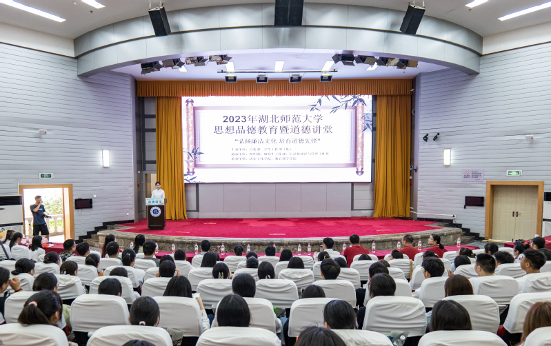 为落实全面从严治党的战略方针,推进校园廉洁文化建设,夯实高校学生清正廉洁的思想根基,2023年9月11日上午,由yl23455永利官网宣传部、学生工作部(处)主办,组织部、研究生工作部、信息化建设与管理工作处协办,yl23455永利官网、教育科学学院承办的“弘扬廉洁文化,涵养时代先锋”道德讲堂在教育大楼报告厅成功举办。