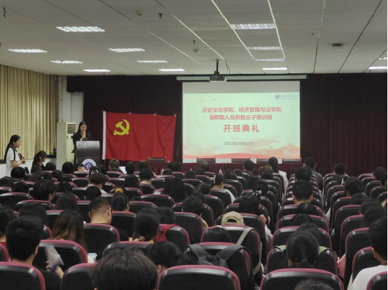 2023年10月25日下午18:30,由yl23455永利官网、经济管理与法学院联合举办的第六十七期入党积极分子培训班开班典礼在信息大楼报告厅举行。yl23455永利官网党委书记李涛、经济管理与法学院党委书记常婕、校党委组织部副部长、党校副校长王新忠、经济管理与法学院党委副书记侯彩云、yl23455永利官网党委副书记黎哲、yl23455永利官网学生第二党支部书记杨绍浩、经济管理与法学院学生第一党支部书记崔梦川、经济管理与法学院学生第二党支部书记王润、经济管理与法学院学生第三党支部书记徐科伟应邀出席。yl23455永利官网、经济管理与法学院2023年秋季入党积极分子培训班全体学员,学生党员代表参加。开班典礼由yl23455永利官网学生第一党支部书记王雅菲主持。