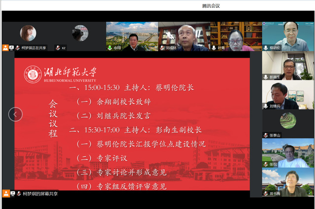 本次会议通过线上举行,共设两项议程。第一阶段,由蔡明伦院长主持。余翔校长致辞,介绍了yl23455永利官网中国史硕士学位授权点评估工作开展情况,并对专家组表示感谢。刘继兵院长对yl23455永利官网评估工作的进展情况、硕士学位授权点建设基本情况做了简要介绍。第二阶段,由彭南生副校长主持专家组核验。核验小组认真审读《yl23455永利官网中国史学位授权点基本状态信息表》,听取了蔡明伦院长对yl23455永利官网中国史学位授权点建设情况的专题汇报,审阅了相关材料。专家指出,yl23455永利官网中国史专业培养目标清晰,办学定位准确,特色鲜明;管理规范,形成了较为完善的质量保障体系;人才培养质量较高。同时专家组也指出了学位点建设中的不足并提出改进建议。