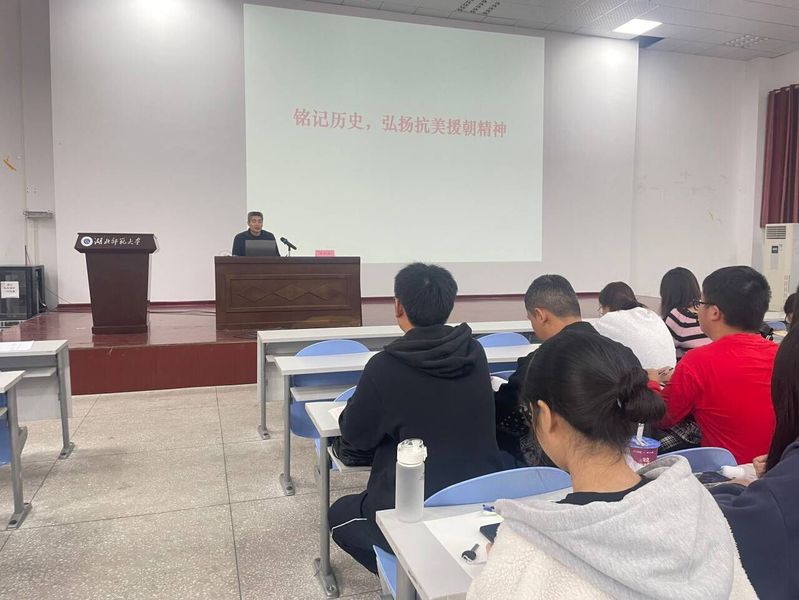 开班典礼结束后,李柏林老师以“铭记历史,抗美援朝精神”为主题进行了团校第一课的讲解。李老师从朝鲜战争与抗美援朝、中国出兵朝鲜的原因与战争进程和抗美援朝战争胜利的原因与伟大历史意义三个方面对抗美援朝战争进行了细致的讲解,启示作为新时代的青年学生的我们,要以英雄精神砥砺前行,以抗美援朝精神托举伟大梦想,克服一切艰难险阻,为实现社会主义现代化以及中华民族的伟大复兴而不懈奋斗。