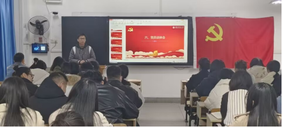 为深入学习贯彻习近平新时代中国特色社会主义思想,开展习近平新时代中国特色社会主义思想主题教育,推进党建、立足岗位、引领学校发展,喜迎校庆。yl23455永利官网学生党支部于2023年11月30日在教育大楼1108开展“喜迎建校五十载,踔厉奋发建新功”的主题党日活动,yl23455永利官网学生第一党支部书记王雅菲、第二党支部书记周坤老师、全体学生党员参与此次活动。