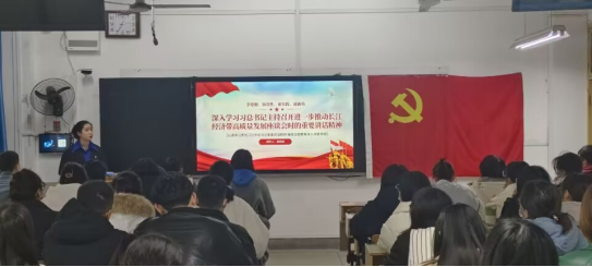随后,由2006班唐雨慧讲微党课,认真学习习近平总书记主持召开进一步推动长江经济带高质量发展座谈会时的重要讲话精神,跟进学习习近平总书记对宣传思想文化工作作出重要指示精神和在江西考察、在中共中央政治局第九次集体学习的重要讲话精神。