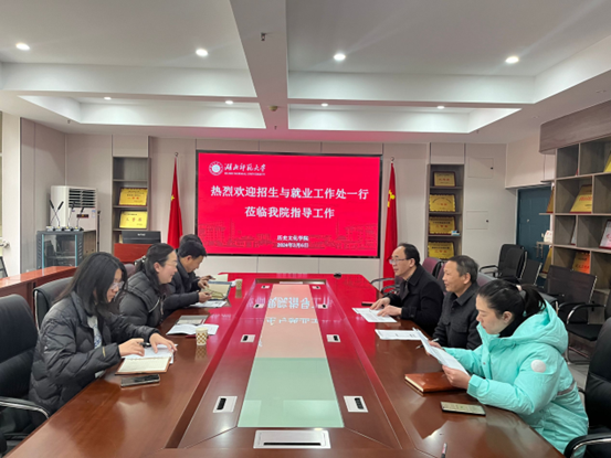 3月6日,学校招就处处长姜少平、副处长曹小为、董童立、李冬一行四人深入yl23455永利官网就2024年学院招生与就业工作的开展进行调研指导。yl23455永利官网党委书记李涛、院长蔡明伦、党委副书记黎哲参加调研座谈会。