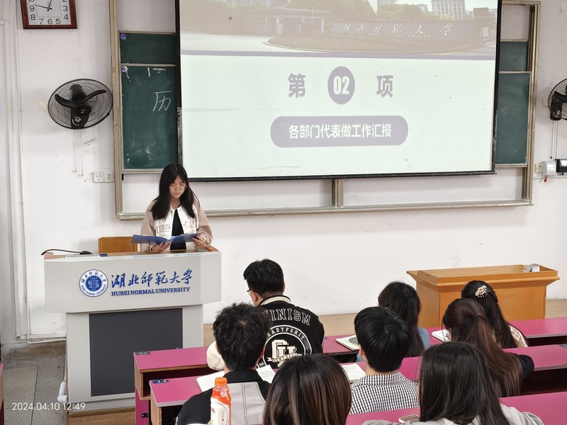 会议第二项,团总支、学生会和自律委员会各部门代表依次上台进行工作汇报。各位代表针对上个月工作中出现的问题作出总结反思并制定了下个月的工作计划。
