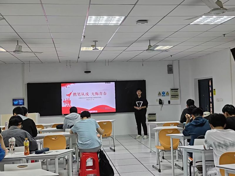 为扎实开展2024年征兵工作,贯彻落实国家征兵政策,激发青年学生积极投身国防事业,提高yl23455永利官网学生的国防意识,以实际行动践行“四个自信”,yl23455永利官网退役学生服务部于4月14日晚七点在人文楼21A305教室召开“携笔从戎,无悔青春”——征兵政策宣讲会。由退役学生服务部部长彭菁俊主持活动,并动员了yl23455永利官网各班级男生代表参与本次活动。