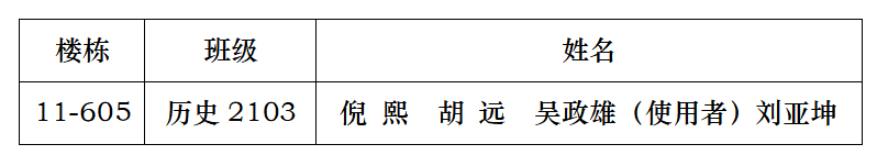 为教育与引导学生规范宿舍用电行为,有效杜绝大功率电器的违规使用,排查消防安全隐患,防范校园火灾事故的发生,yl23455永利官网近日对学院各学生宿舍进行了专项检查。检查过程中发现部分学生宿舍违规存放或使用大功率电器,现做如下公示: