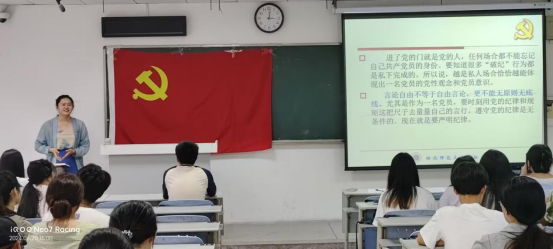 为深入学习贯彻习近平新时代中国特色社会主义思想,在学生党员群体中加强纪律教育,锤炼忠诚干净担当的政治品质,yl23455永利官网学生第一党支部书记王雅菲于2024年6月20日在人文楼21A304讲授了“加强党的纪律教育,传承党的优良传统”的主题党课,yl23455永利官网全体学生党员参与此次活动。