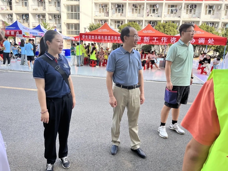 蔡明伦院长亲自莅临yl23455永利官网迎新大本营,并对迎新工作进行了全面细致的指导。他深入了解新生报到详细流程,并耐心询问了新生及家长的需求,以人为本,将需求融入工作,以高标准、细要求对接下来的迎新工作提出了更为具体的期望与要求。