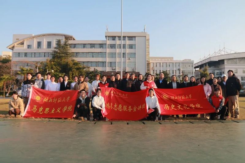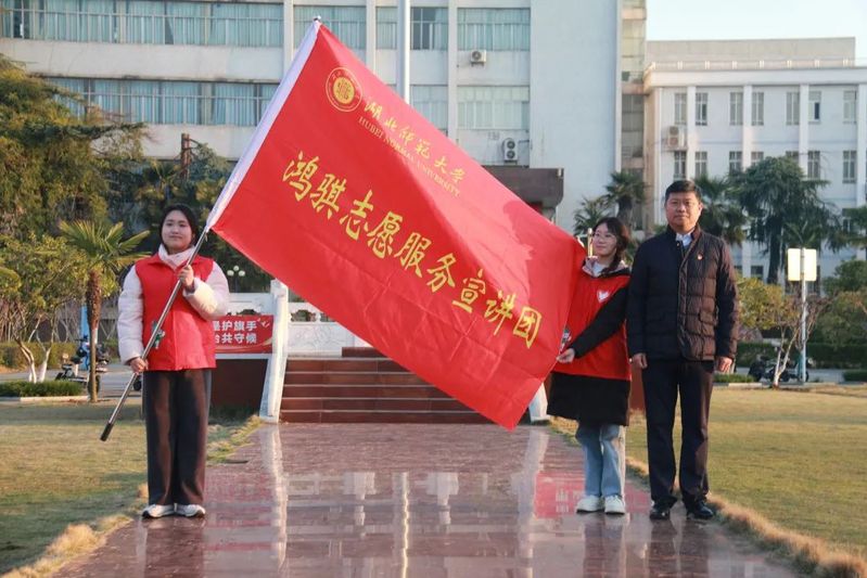 在授旗仪式环节,马列军为马克思主义学院鸿骐宣讲团授旗,正式启动了2025年度“鸿志骐行·薪火传扬”新时代理论宣讲专项行动。鸿骐宣讲团以学生党员和“优师计划”培养对象为主体,致力于通过基层理论宣讲和红色文化教育,培育兼具家国情怀与专业素养的新时代卓越师范生群体。授旗仪式后,鸿骐宣讲团带来了原创诗朗诵《师范立教传薪火,丹心报国育英才》,展现了新时代青年学子对教育事业的热情与奉献精神。