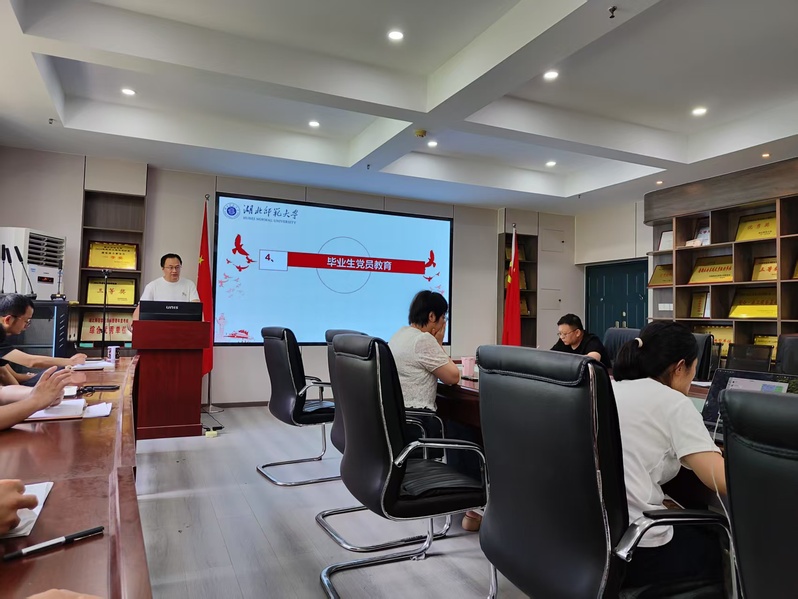 接下来为本月过政治生日的王军、王参民、邱晓磊、康博仁、祝志芬、杨庆等同志送上生日贺卡。本月主要理论知识学习由支部书记领学《加快建设文化强国》,强调了文化建设的重要性,以及涉及学院特点的文旅融合发展,以湖北文旅为案例开展讲述分析。其次,由魏仕俊同志领学《八项规定改变中国》,这也是对当前扎实开展深入贯彻中央八项规定精神学习教育的回应,并持续深化学习研讨相关典型案例,开展警示教育,促成党员干部对照剖析反思,深入交流研讨,以案促改,以案促学。并由冯文娟同志进行补充,加强对在座党员同志的警示教育,同时对八项规定改变工作作风进一步阐读,开展对《中国共产党纪律处分条例》的深入集中学习,对于相关规定解读、微视频等网络资源,不断推动党纪学习教育常态化长效化。最后是针对即将迎来的学生毕业季,开展毕业生党员教育。