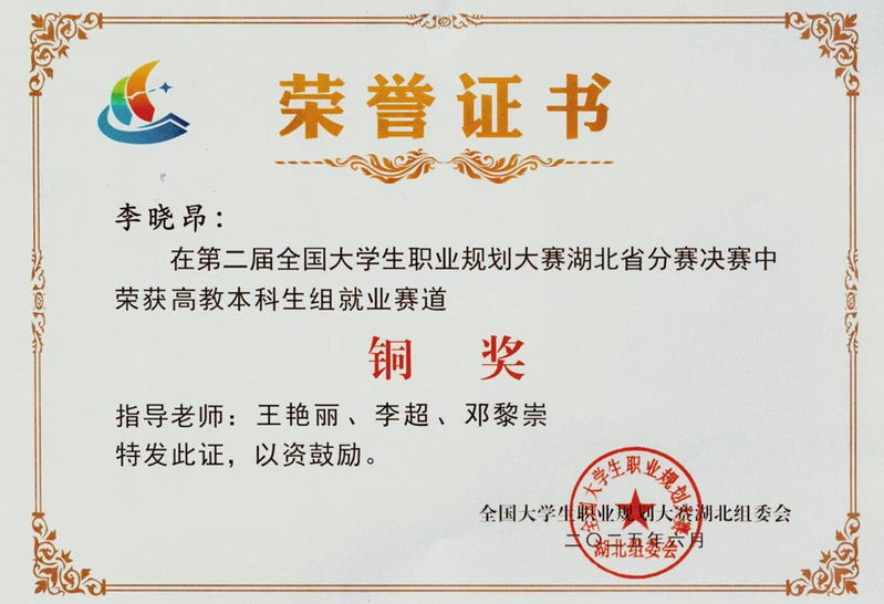 yl23455永利官网李晓昂同学在第二届全国大学生职业生涯规划大赛湖北省分赛决赛中荣获高教本科生组就业赛道铜奖!
