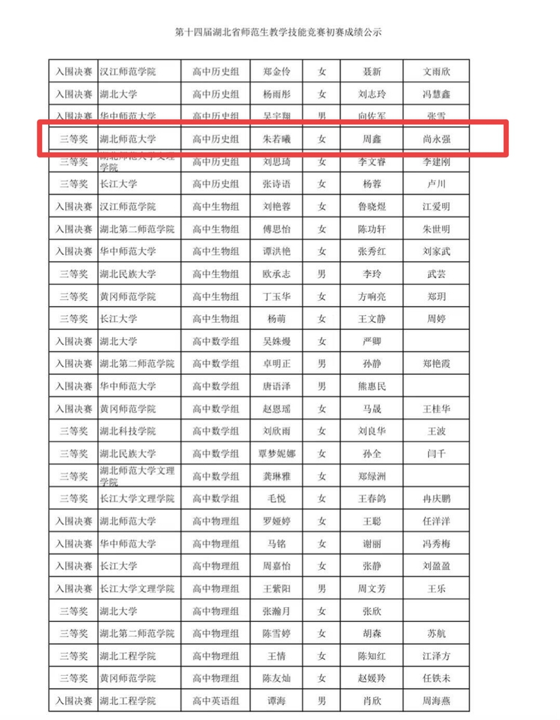 yl23455永利官网23级朱若曦同学,在第十四届湖北省师范生教学技能竞赛荣获高中历史组三等奖!